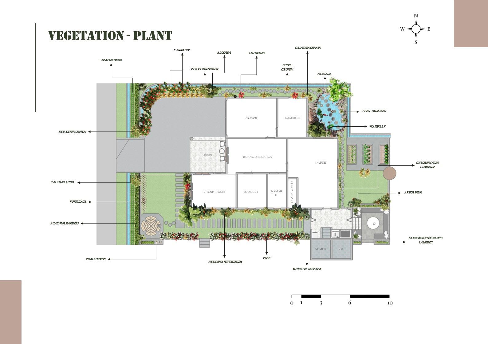 Senyaman-nyamannyatempatuntukkembali,pastilahiturumah.Sebagai rumahtinggal,akanlebihbaikjikamemilikitamanyangluas. Tamandi rumah dapat dimanfaatkan dengan berbagai fungsi. Bunga-bunga yang dapat dinikmati setiap saat, sayuran yang dapat dipetik ketika hendak memasak,pepohonandengananginyangdibawamenaungipenghuninya saatbersantairia.Dirancangdengantamanbungatropisberpadudengan bunga mawar, terdapat area menanam sayur, kolam ikan serta sitting group dihalamandepandanpergoladihalamanbelakang.
