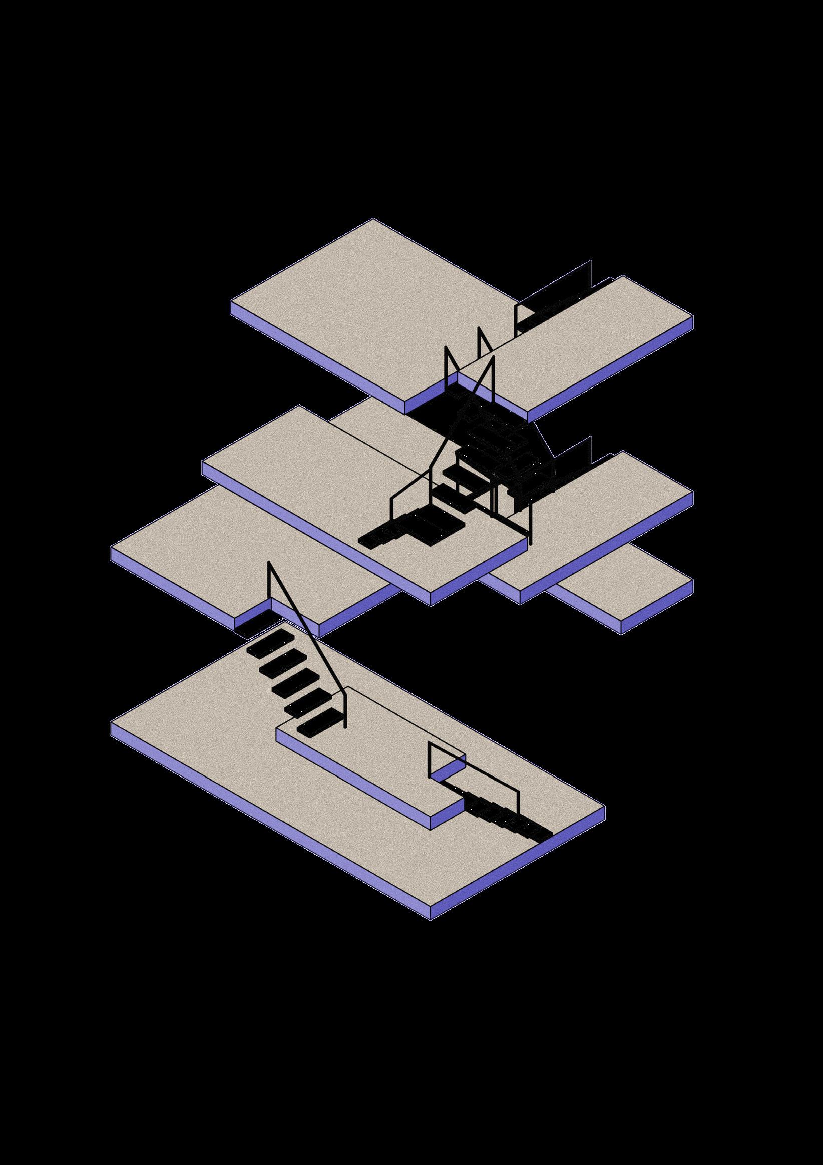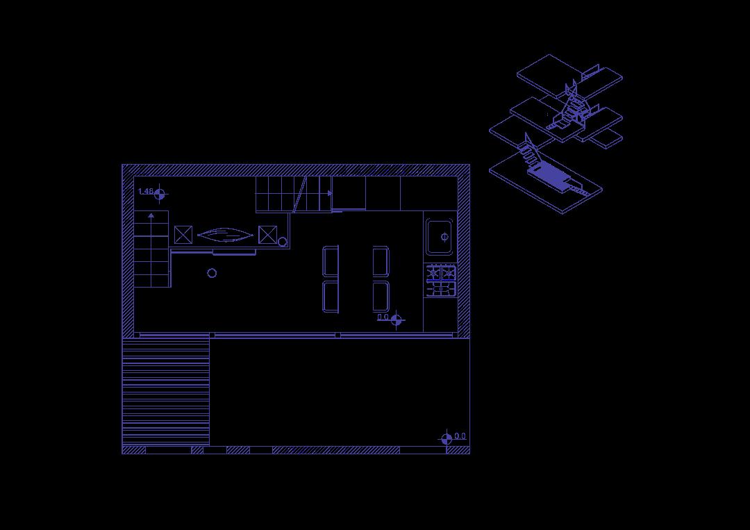 The interior is made up of multiple platforms that serve as flooring and are positioned at various levels. this strategy allows us to make spaces multifunctional. The fact that they are stacked on top of one other in this circulation design indicates that natural light may enter the bottom level through the two skylights on the roof. every environment has abundant natural light. The construction is made up of wood and metal materials because they assist the building responds well to seismic waves and allow the walls to be as thin as possible in order to improve the internal surface area.