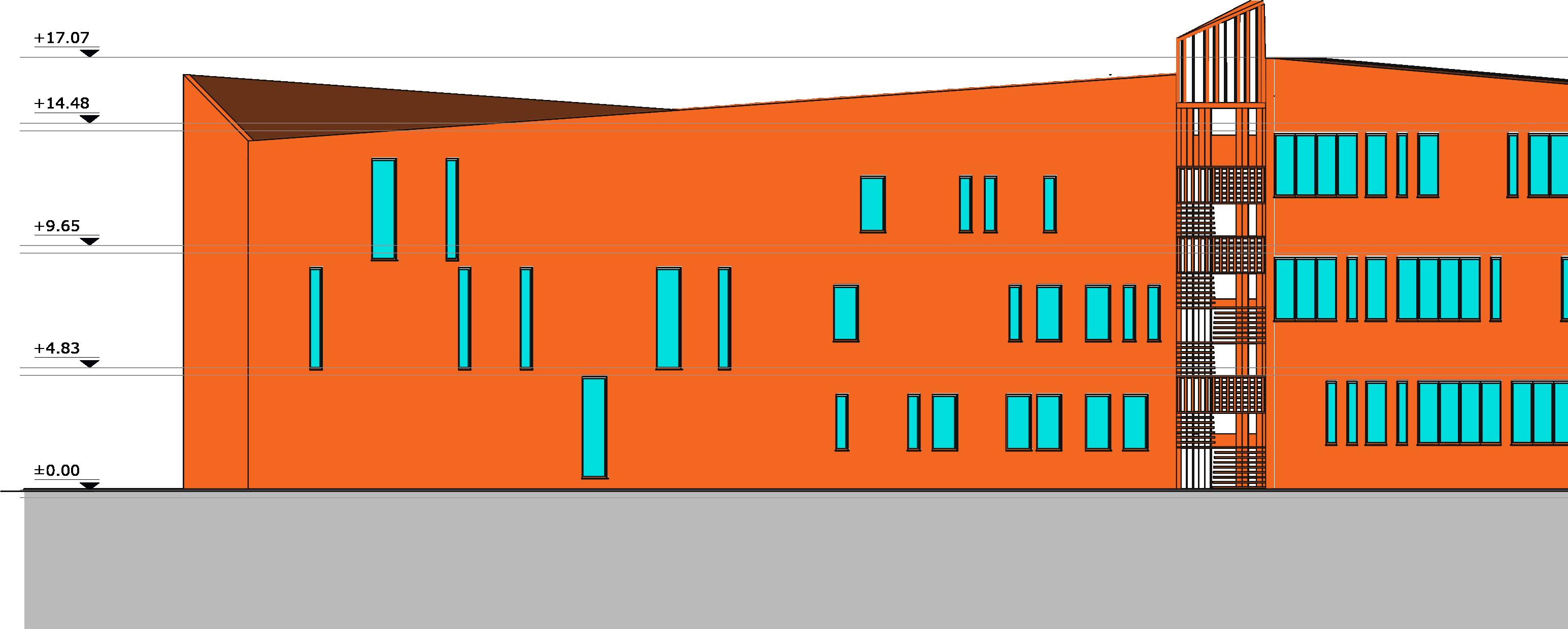 One The Volumes is Enlarged To Better Occupy The Specific Shape of The Plot And Create Room For a Second Gym