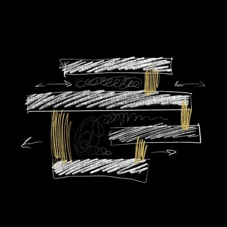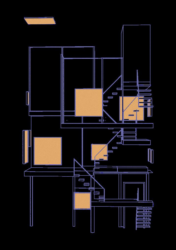 The Inner Conection is Organized Verticaly Aalong These Transparent Volumes