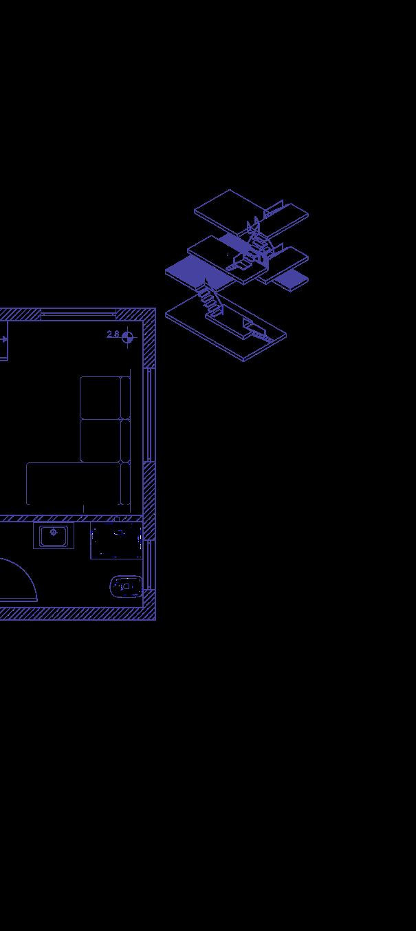 This project aimed to create comfortable and flexible spaces for a family of three, located in a very dense site in Japan. The available space is 25m2. The process of creating structures began with a study of urban spaces. The location is bordered between three highways, together with the entrance, which is directed by the busiest road. To ensure tranquillity in this metropolitan neighbourhood, various spaces have been constructed at the front of the facade, in the shape of a square, while preserving a particular module.