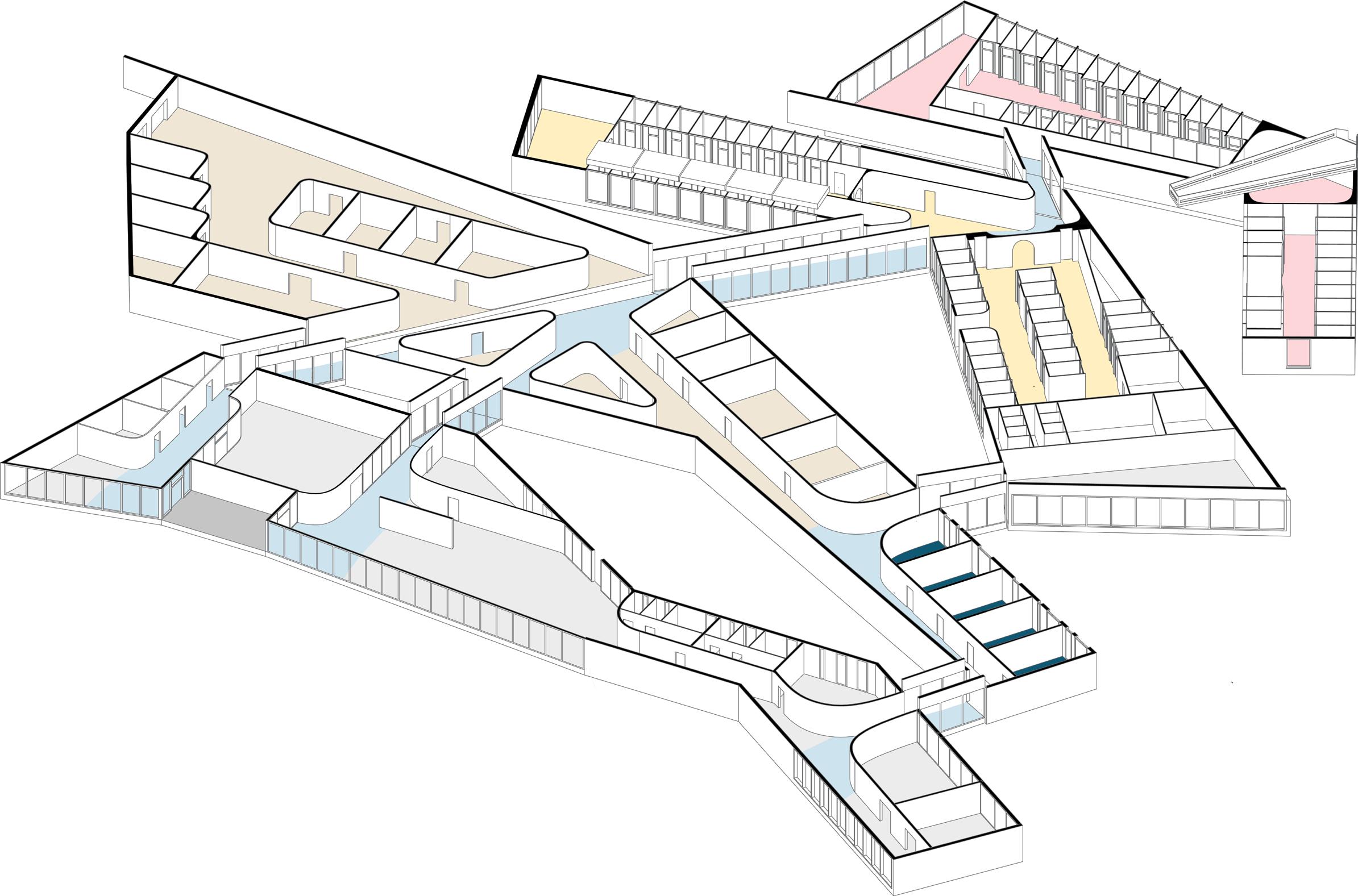 A Linear And Uninterrupted Visual Axis, Despite The Outer Irregularity Of The Volumes Provide Clarity And Ease The Overall Management Of The School The Final Volume