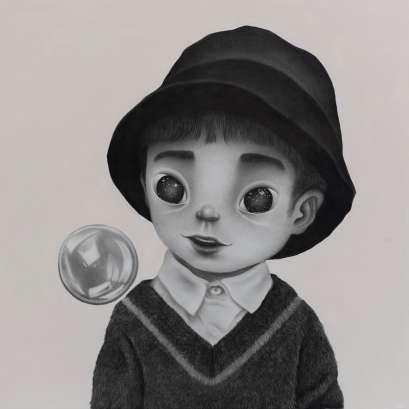 BLISS IN DISGUISE 36 x 36 in Charcoal on canvas 2022