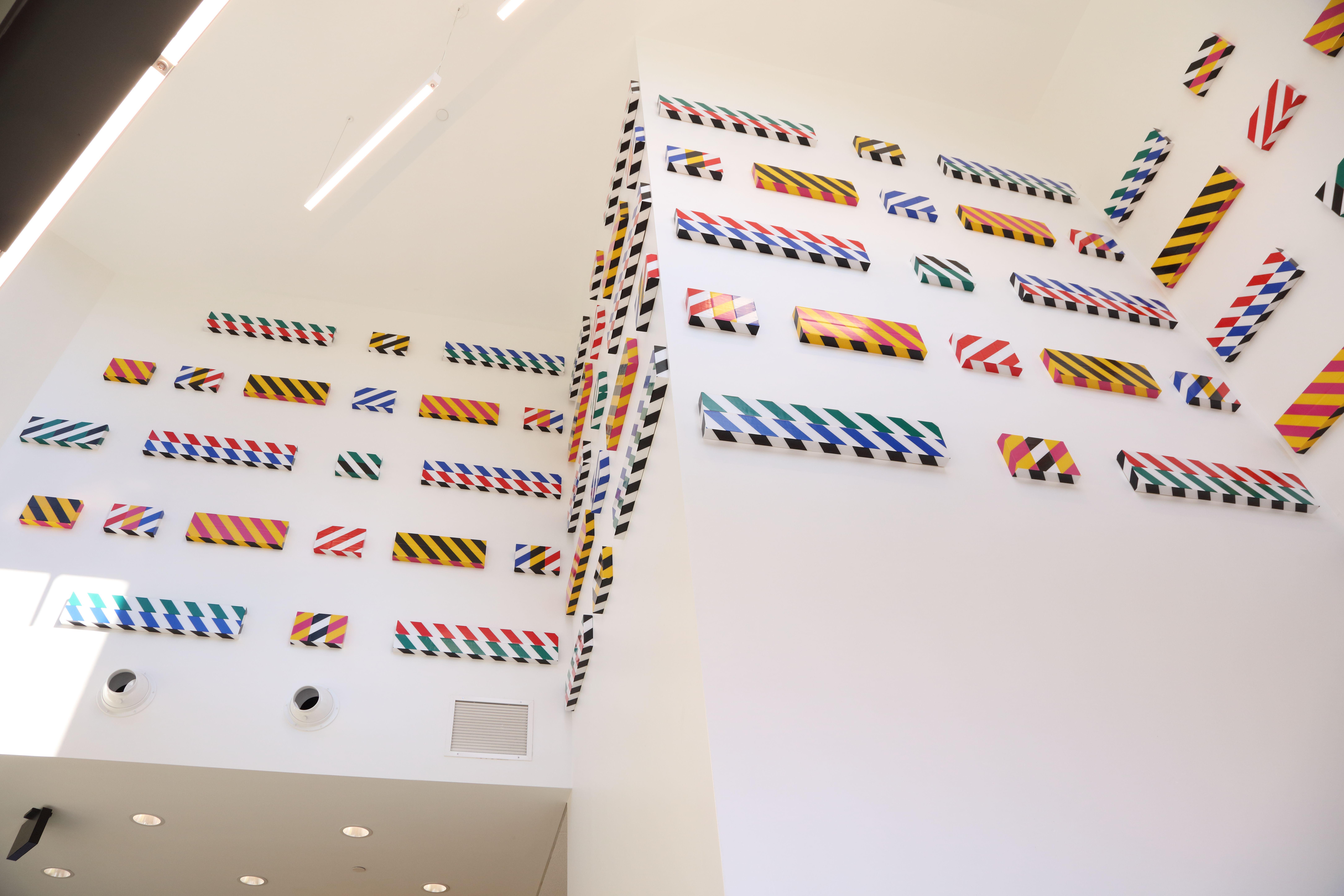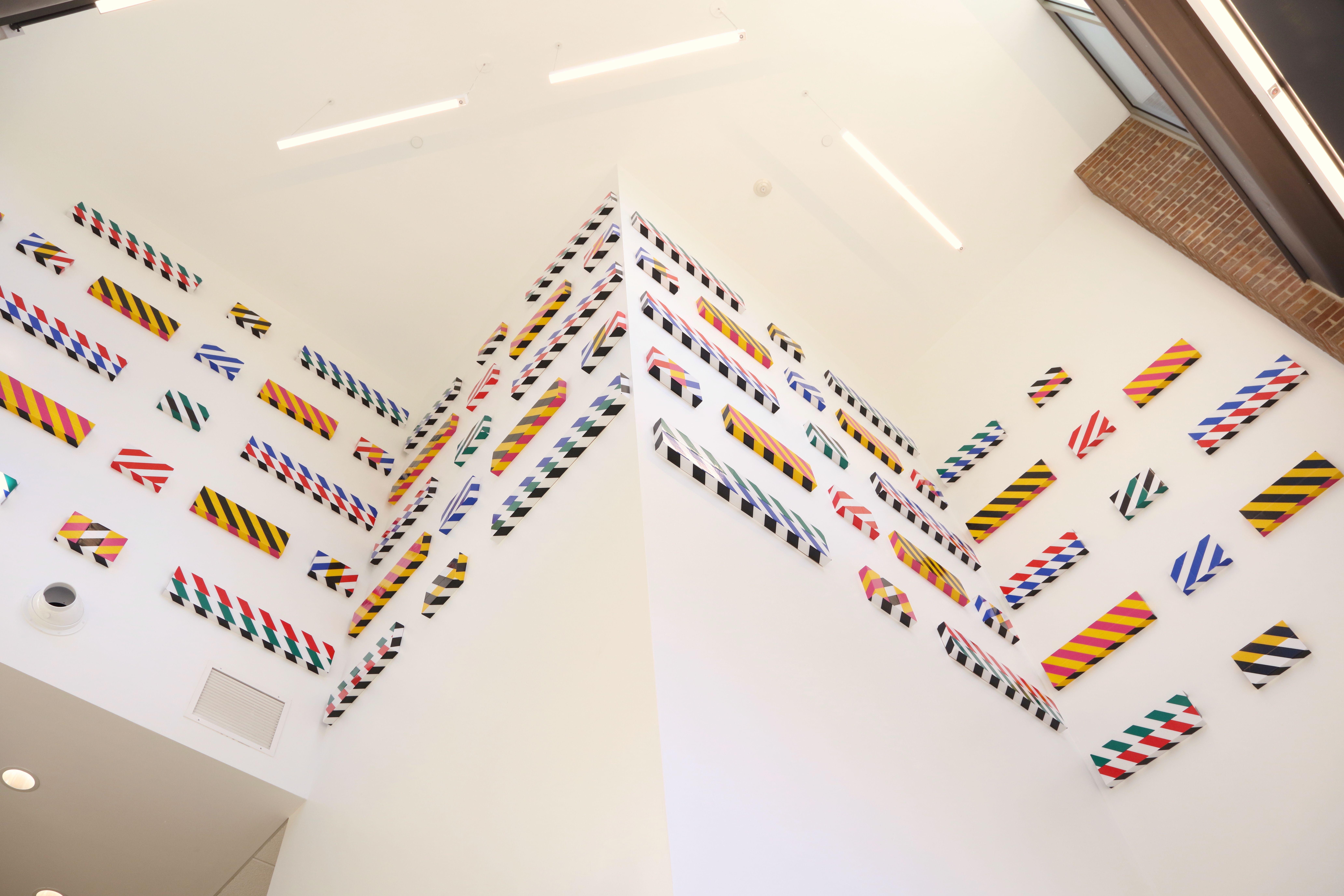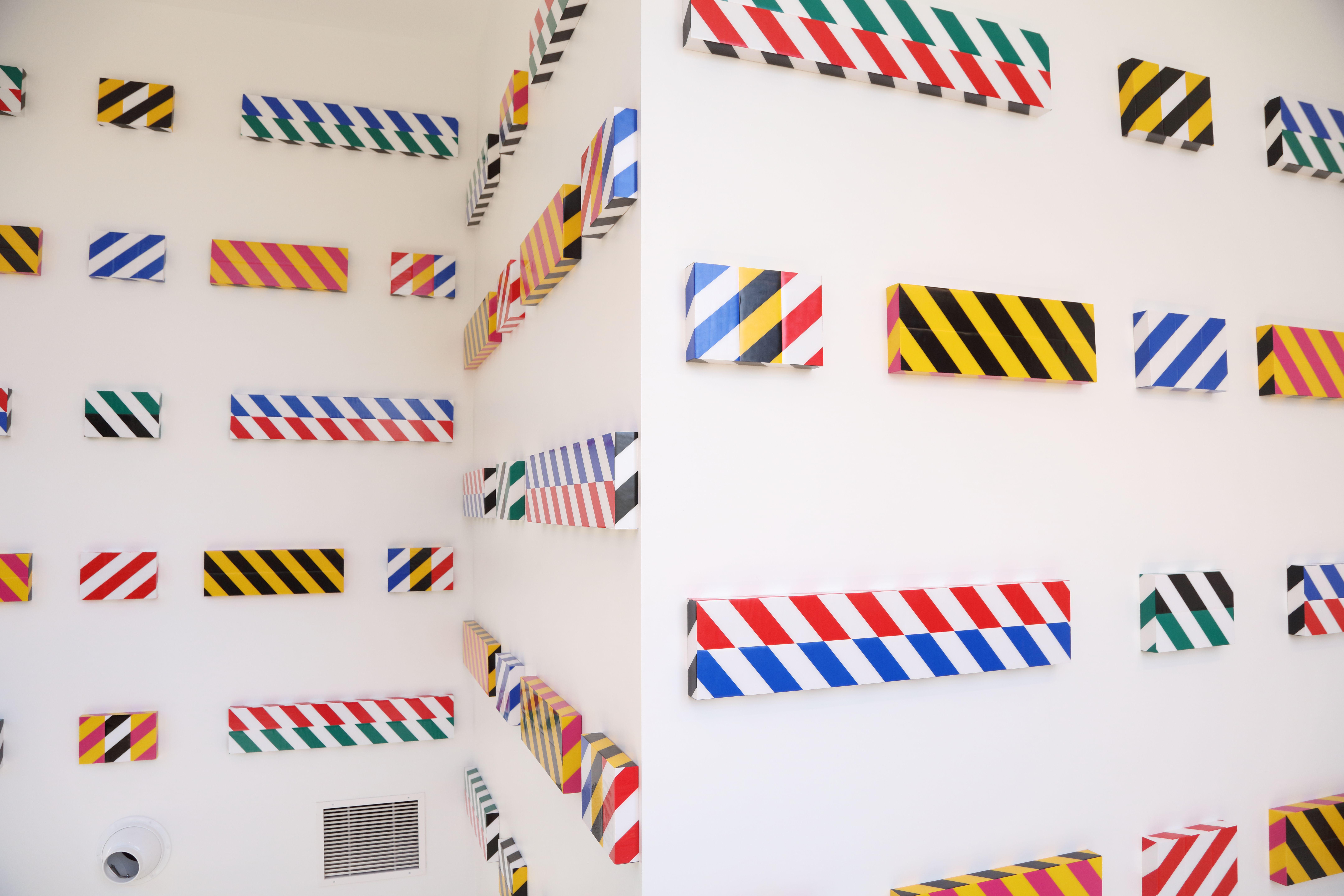 Work title: 'OSHA/ANSI no.15: Safety Tape on Panel', 2020.