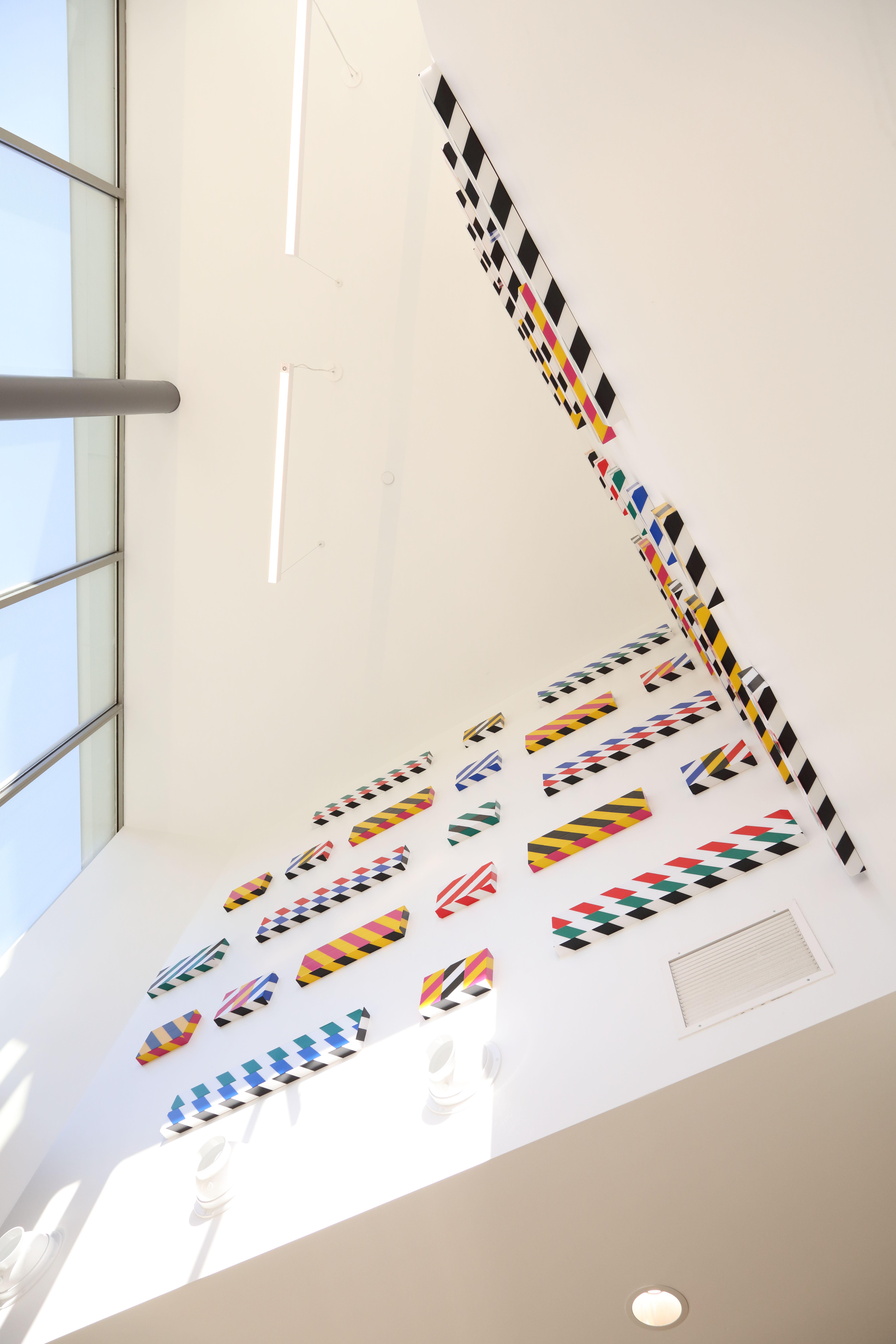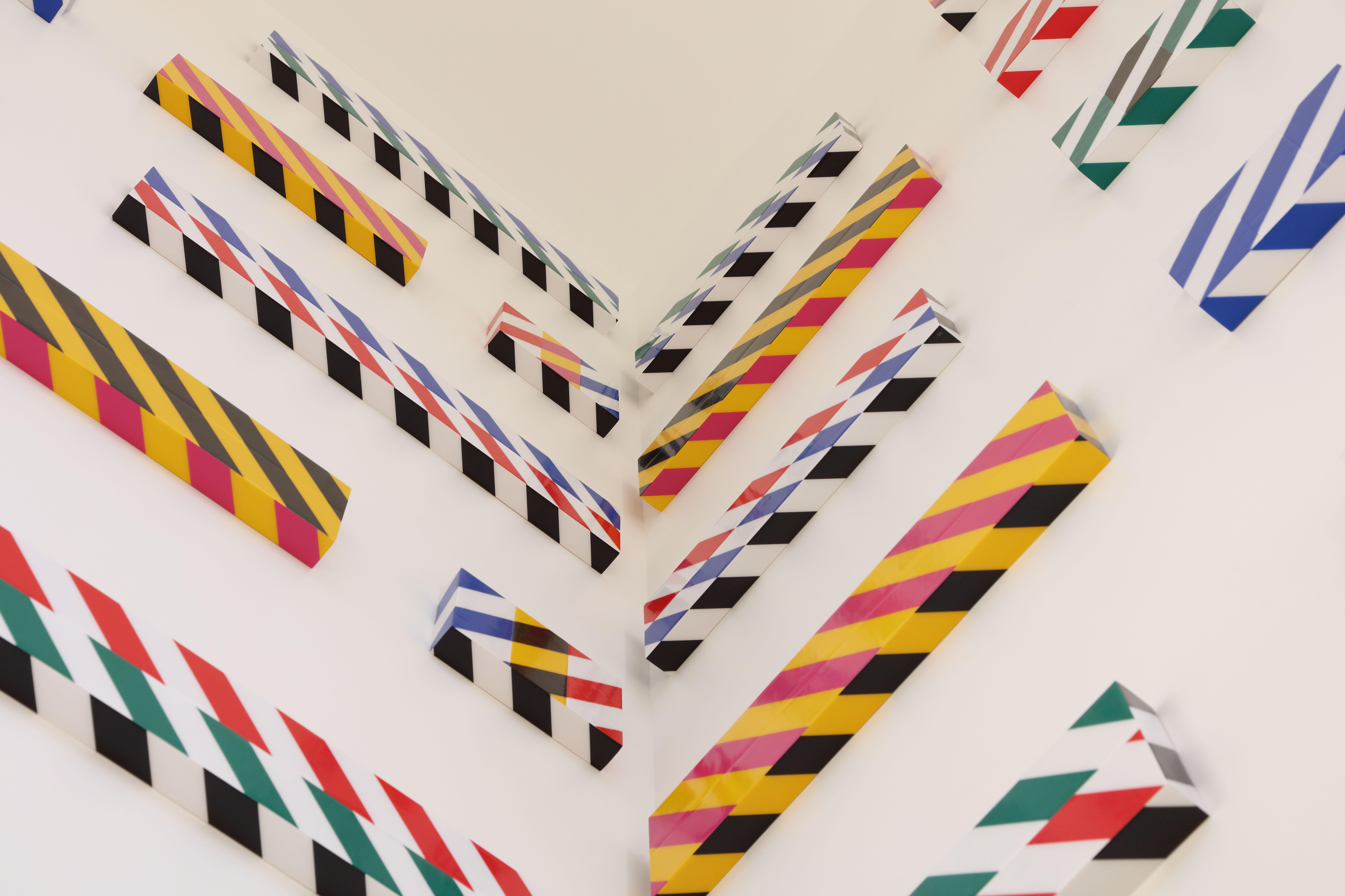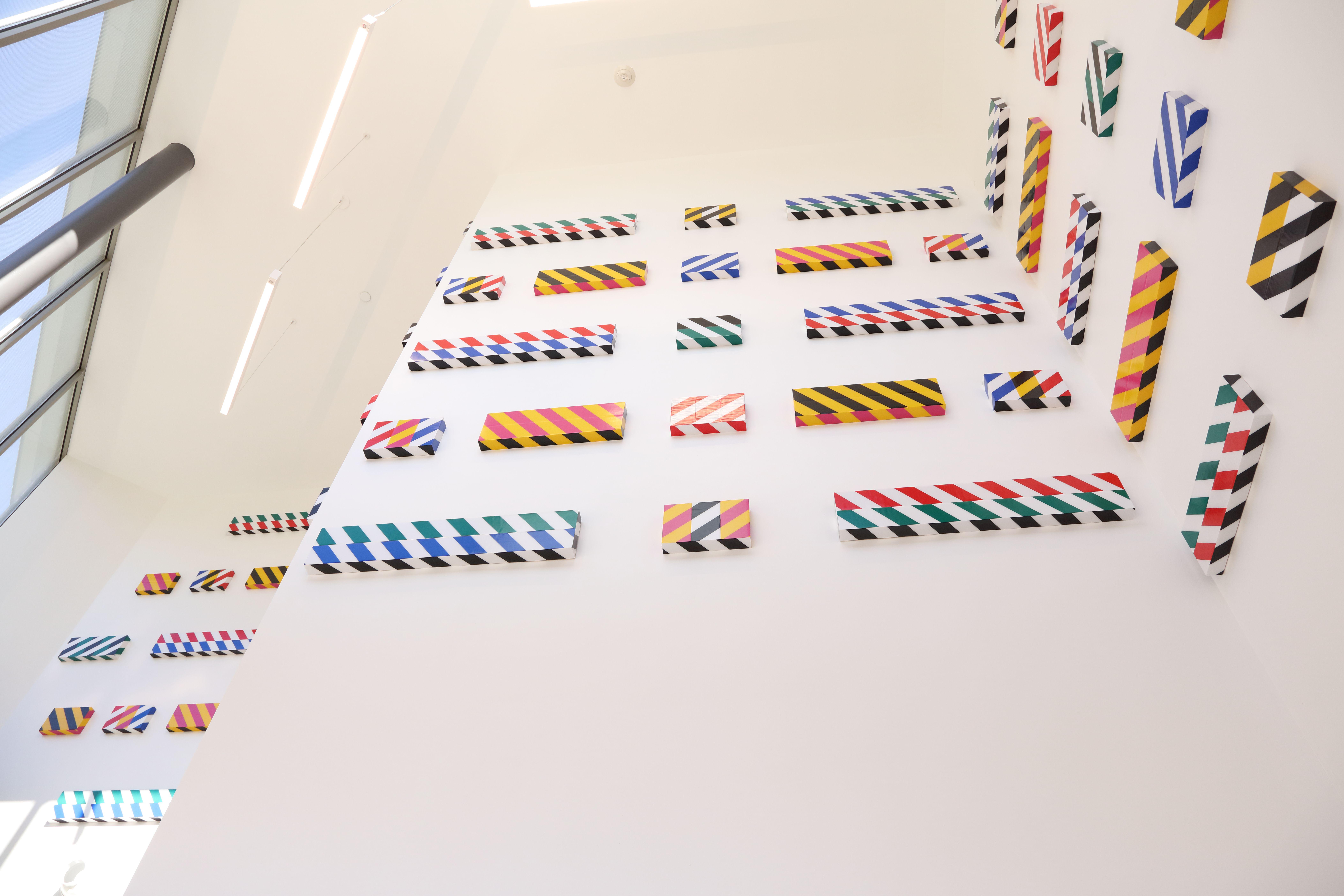Work title: 'OSHA/ANSI no.15: Safety Tape on Panel', 2020.