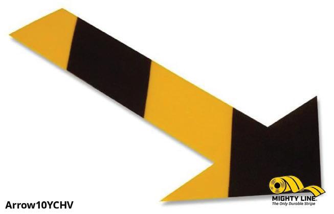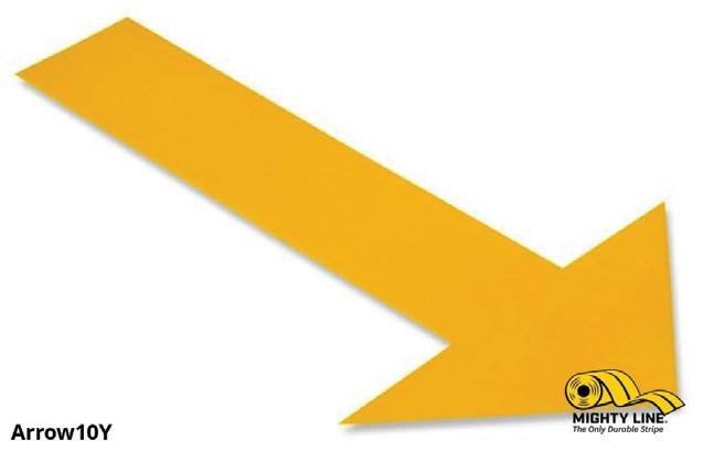 Patented Mighty Line Floor Marking Yellow Floor Tape Arrows. Our Mighty Line Arrows are 10 inches long and 6 inches wide at the widest point. Mighty Line arrows are a great floor safety marking tool. Mighty Line 5s floor marking arrows point pedestrians towards safety in emergency situations.