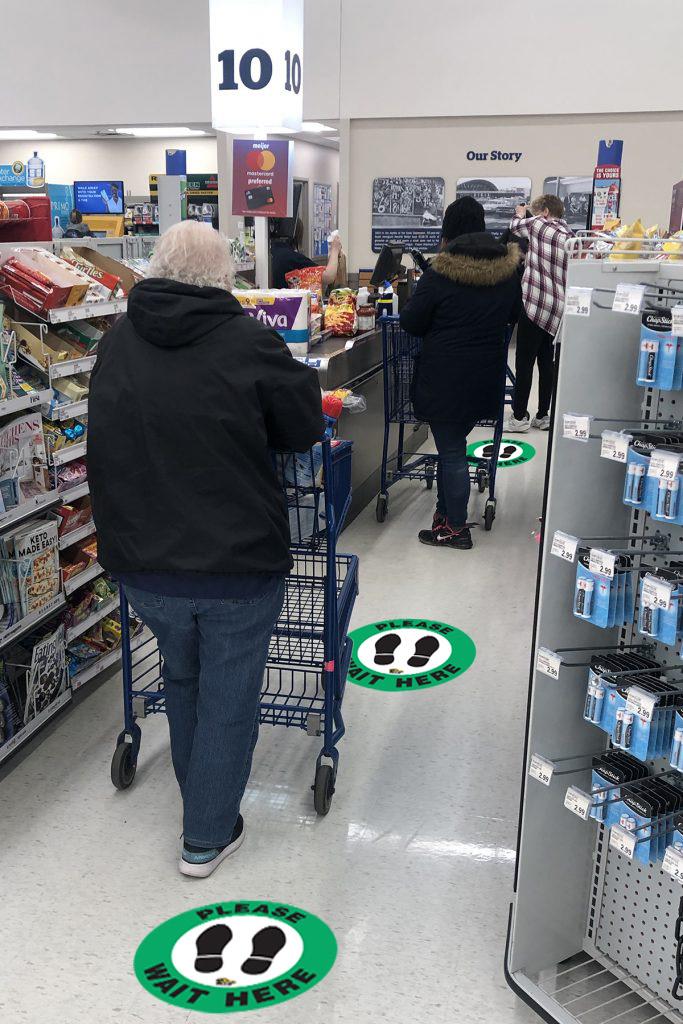 For example, many hospitals use our foot prints to maintain proper separation when using elevators or washing stations. Also many offices use our floor signs to remind employees how to properly wash their hands and cough into their elbows.