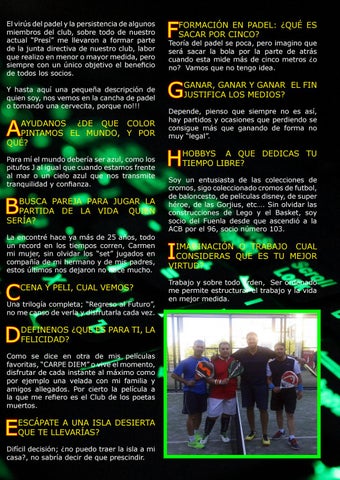 El virús del padel y la persistencia de algunos miembros del club, sobre todo de nuestro actual “Presí” me llevaron a formar parte de la junta directiva de nuestro club, labor que realizo en menor o mayor medida, pero siempre con un único objetivo el beneficio de todos los socios. Y hasta aquí una pequeña descripción de quien soy, nos vemos en la cancha de padel o tomando una cervecita, porque no!!!