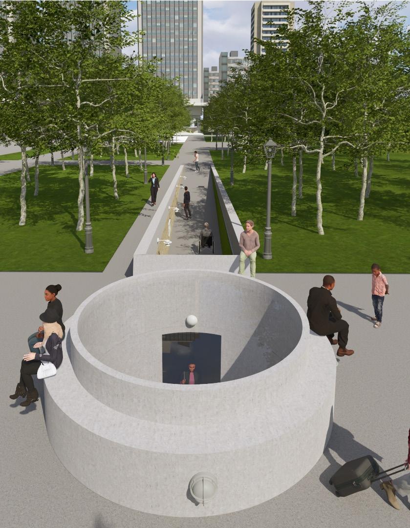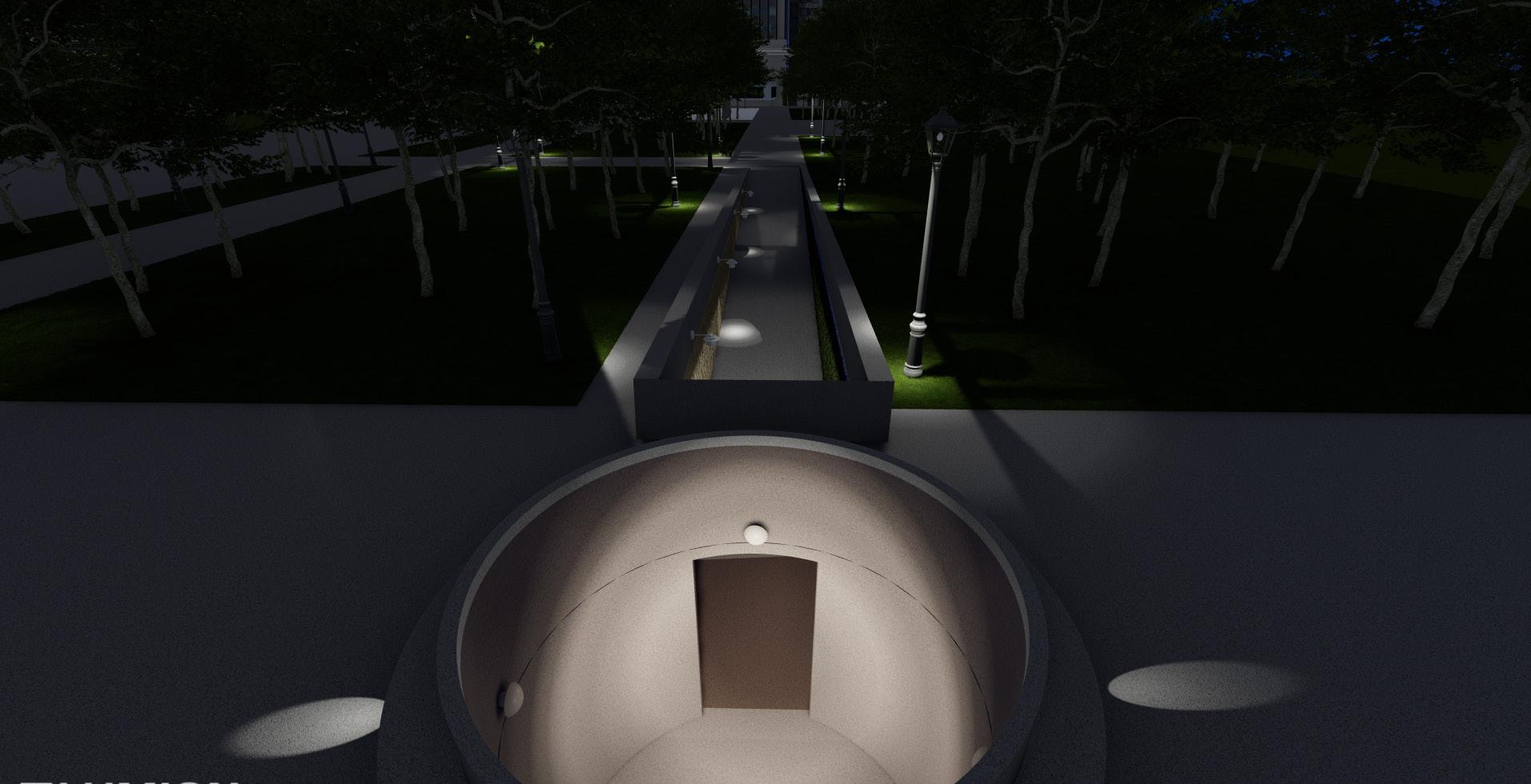 The project attempts to create a historical ecological addition to Bryant Park that provides an interactive walk way through time itself told through changing sediments of soil. As descending you will be met by glass that will not only provide view of the changing soil, but also provide key points in New York’s history frosted on the glass to show how Bryant Park came to be. At the end of the walk, you will be met in the “Time Capsule” itself and will be able to write a memory of your own, as well as take someone’s memory as a momento.
