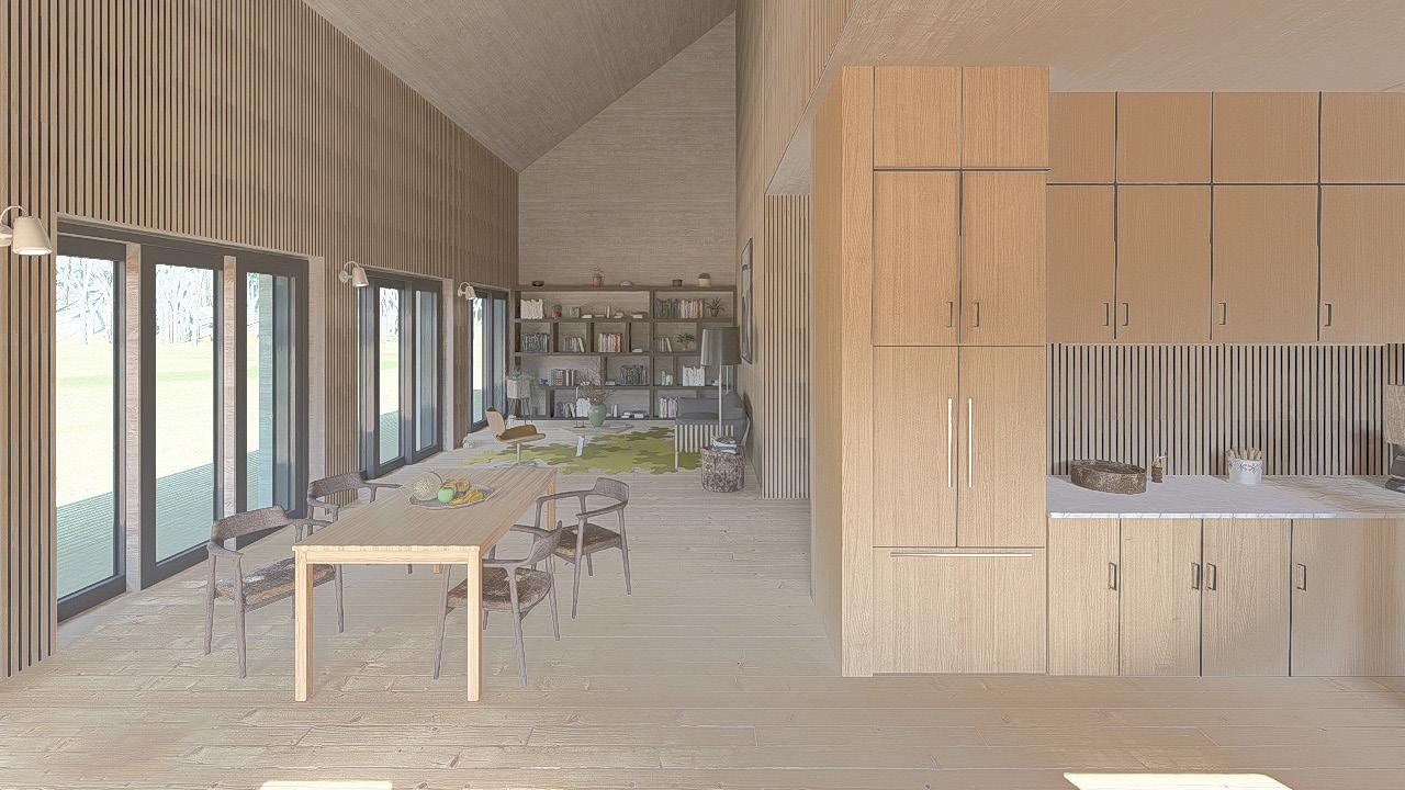 In this project, we were tasked with designing an additional dwelling unit (ADU) located in Portland, Maine. The objective was to create a space that accommodates the distinct needs of both an elderly couple and a younger couple. Balancing these two user typologies informed our approach to spatial organization. We developed an interlocking “L” conguration for the oor plan, allowing us to clearly delineate public and private zones while fostering a sense of connection and shared use within the compact footprint.