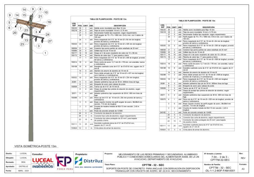 DESARROLLO DE ARMADOS (FAMILIAS DE POSTES DE BAJA, MEDIANA Y ALTA TENSIÓN) Y METRADOS