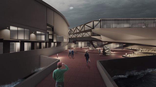 Intended for visitors to the island who are unrelated to research activities and includes three museums (Biological, Historical and Geological), each connected by bridges to their respective research center; as well as an auditorium and a public space.