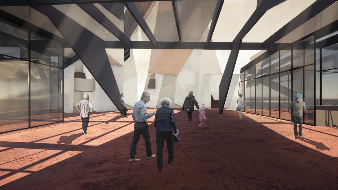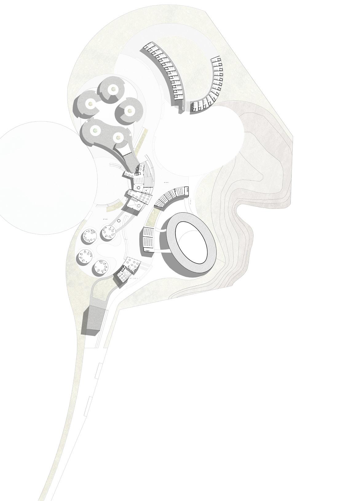 Intended for researchers; it includes 3 research centers (Biological, Historical and Geological), a housing area, a specialized library connected to the three research centers through vertical circulation, a dining room and a public space.