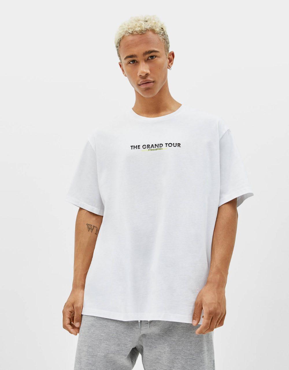playera manga corta con una franja cruzando por en medio de la playera con el mismo diseño del estampado