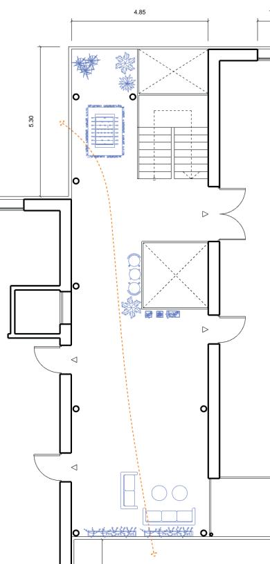 En primer lugar se trasladará el ascensor al interior de la zona común de acceso a viviendas. De esta forma, detectamos cómo el ascensor se convierte en un obstáculo visual que interrumpe la ventilación cruzada, el paso de luz y que además de ocupar una superficie que se podría destinar a otros usos, no invita a generar nuevos a sus costados. Como consecuencia, algunas situaciones desaparecen.