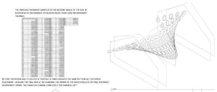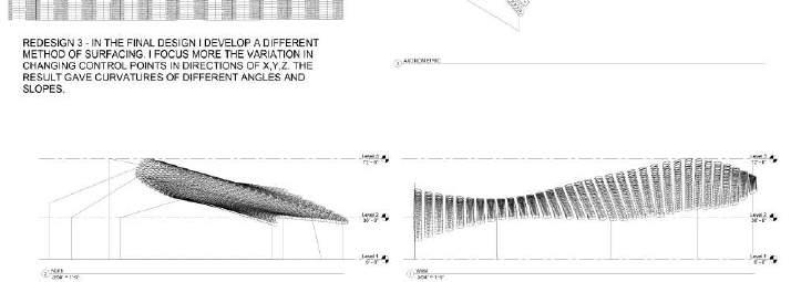 Advancing through cmtemporary design, the challenge to develop technical and digital skills by crafting with digital design sofware have compromise the competence to improve efficiency and precision in architectural design. The task to producetwo- and- three dimensional drawings which exhibit a digital representationentails a “real world output” with the navigation system of parametric design. Theproject consisted in three steps, initialized with a digital model ofa three-dimensionaltruss including plans,sections and axonometrics. The second phase lead to constructing a digital model of a surface by designing and controlling progressive sectional curves to accomodate twoor more forms of seating for a public space ( sitting, reading, working, observing ) Final phase represented the final parametric bridge of developing modeling and surfacing strategized in which merges structure and surface.