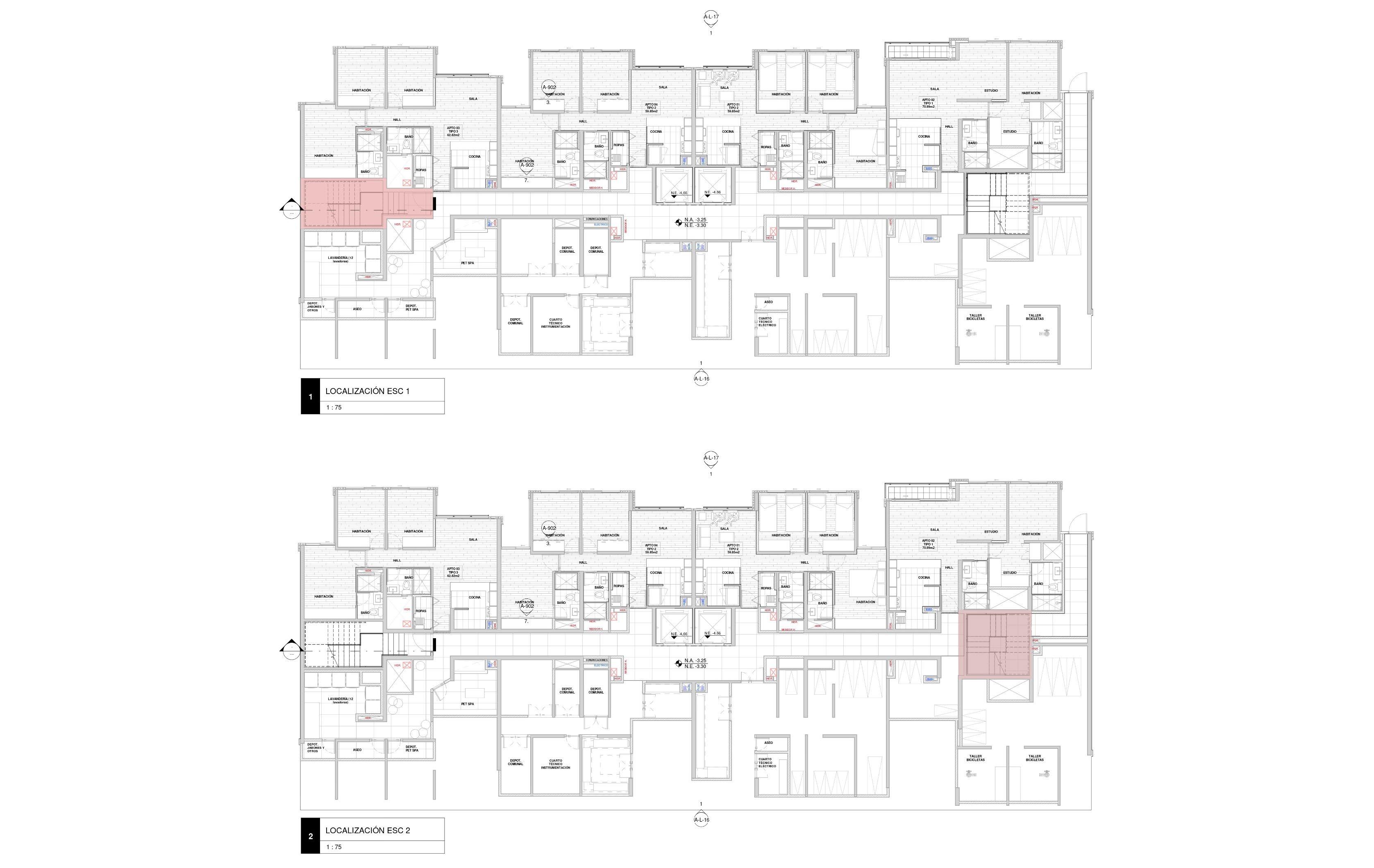 EL TRABAJO REALIZADO PARA LOS PLANOS DE DETALLE DE ESCALERAS COMIENZA CON UN PLANO DE LOCALIZACION QUE PERMITE OBSERVAR DONDE ESTAN UBICADAS, EL AREA QUE OCUPA Y LA FORMA DE ESTAS. DESPUES DE ESTE ANALISIS SE DETERMINA SEGÚN LA NSR 10 LAS HUELLAS Y CONTRAHUELLAS DE ESTAS Y AJUSTANDO LA CONEXIÓN CON TODOS LOS NIVELES. POR ULTIMO SE REALIZAN LOS
