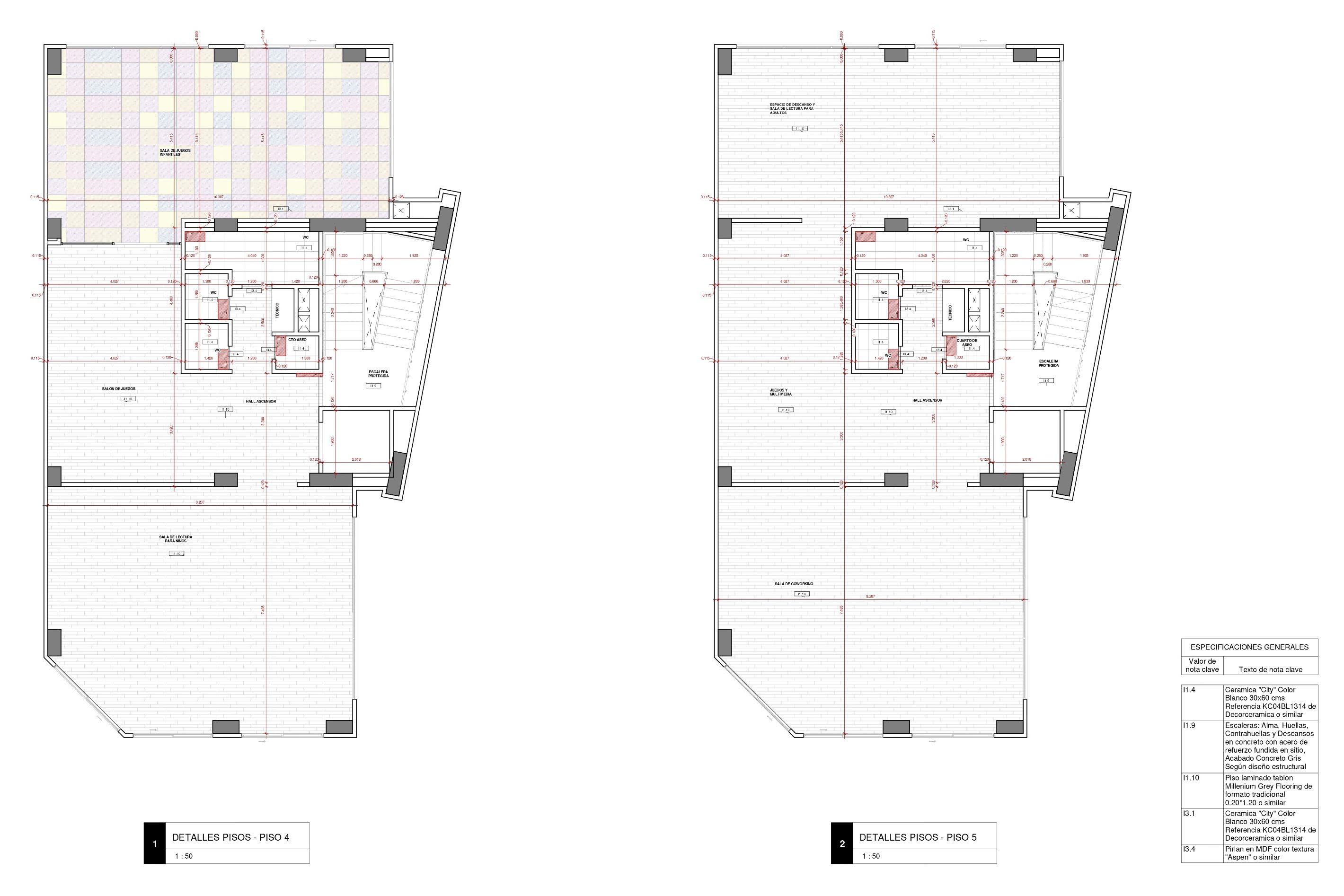 Por ultimo se realizaron los detalles de las zonas comunes del edificio como cielos rasos, suelos y escaleras. En el detalle de suelos se agrega el material asignado para cada área del proyecto con sus respectivos arranques y especificaciones. Para el trabajo del cielo raso se asignaron a los espacios que eran necesarios como baños, salas, cocinas y zonas comunes y se realizo el trabajo de detalle de cada uno con su respectiva especificación. Y para las escaleras se sacaron distintas vistas y se ajustaron a la estructura del proyecto cumpliendo con la NSR 10, se crearon los acotados de cada área de la escalera y se realizaron distintos detalles como acabados, especificaciones y accesorios.