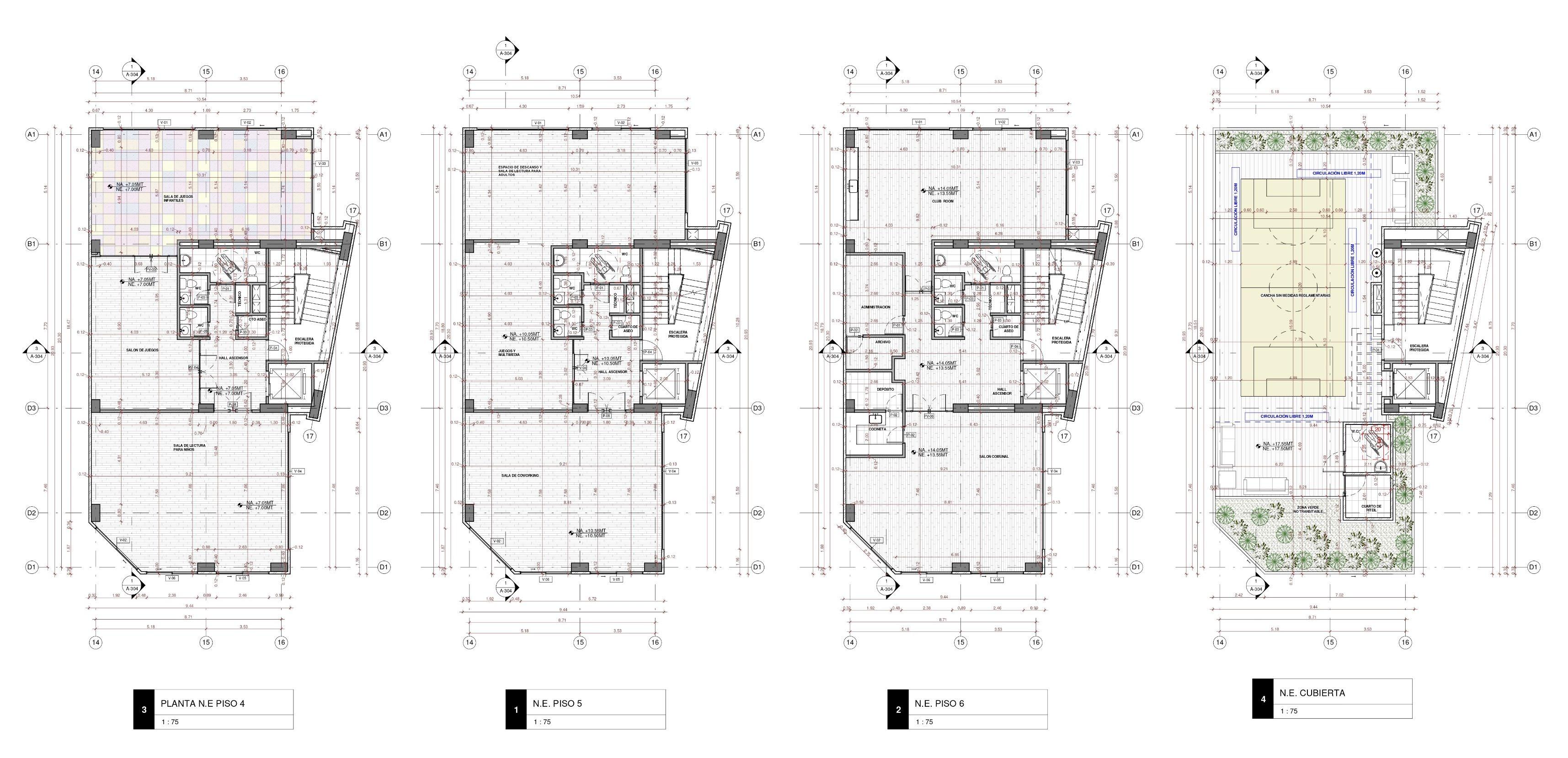 COMO TRANSPARENCIAS MOBILIARIO Y TEXTURAS DE MISMO MODO SE ORGANIZA Y SE LIMPIA EL PLANO PARA QUE SEA LOS MAS LEGIBLE Y ORGANIZADO POSIBLE. SE MUESTRAN LOS 4 NIVELES SUPERIORES EN DONDE SE ENCUENTRAN ESPACIOS COMO SALA DE JUEGOS, SALA DE LECTURA, SALA DE DESCANSO, SALA DE COWORKING, SALON COMUNAL, CLUB Y CANCHA DE FUTBOL