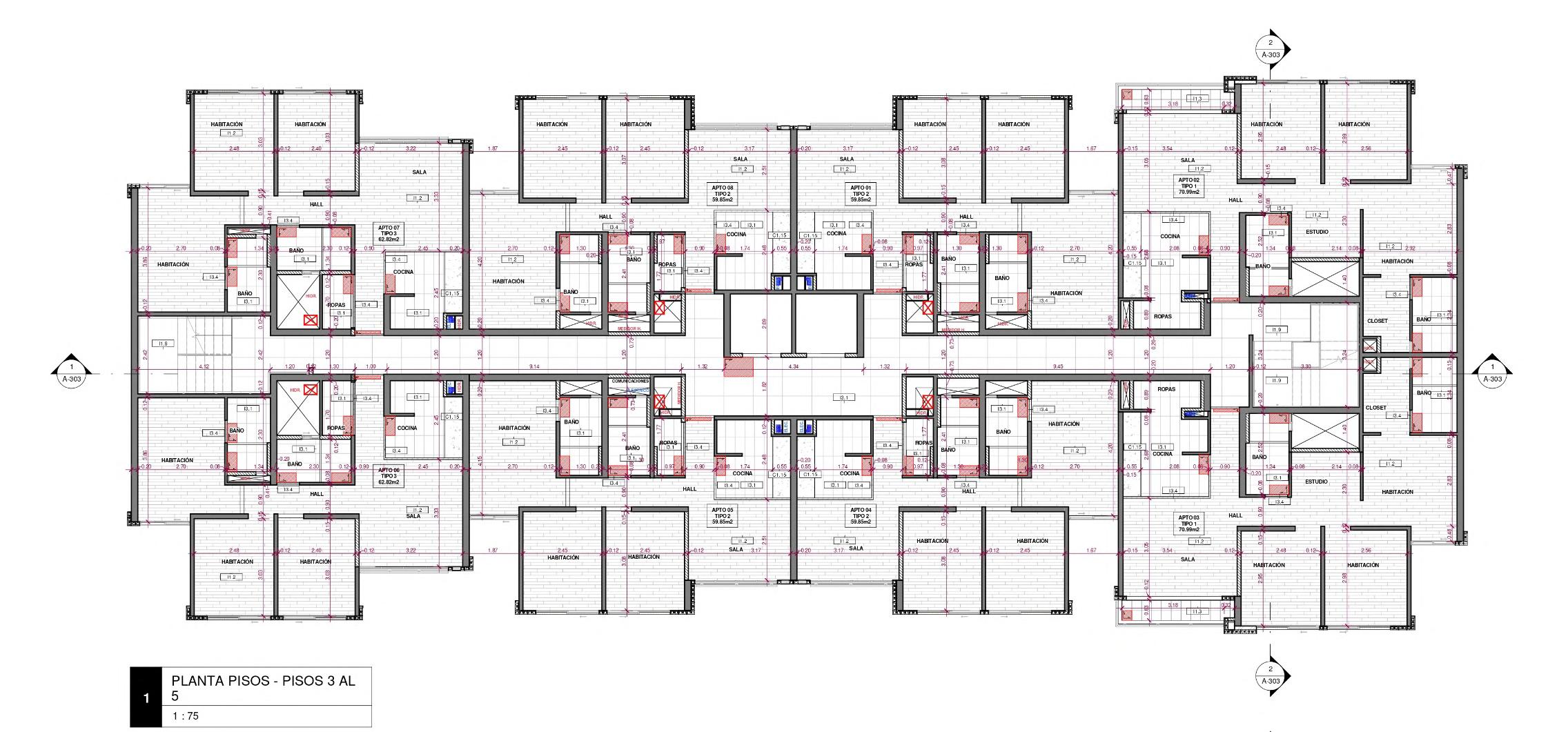 CUENTA CON 8 PISOS TIPO (PISO 1, PISO 2, PISO 3 5, PISO 6 10, PISO 11 15, PISO 16, PISO 17 Y PISO 18). EN LOS CUALES SE DISPONEN 8 TIPOS DE APARTAMENTOS DE 55 75 M² SIENDO EL PISO 18 EL UNICO PISO QUE MARCA UNA DIFERENCIA TENIENDO APARTAMENTOS VIS DE 35 40 M².