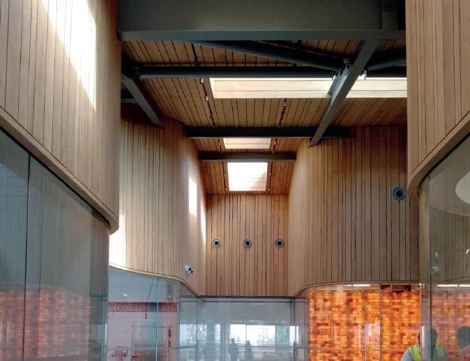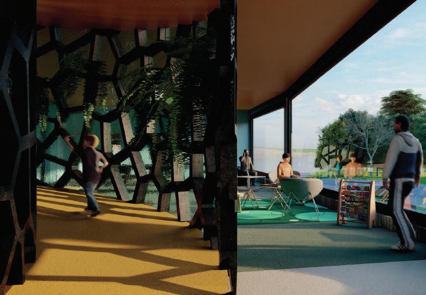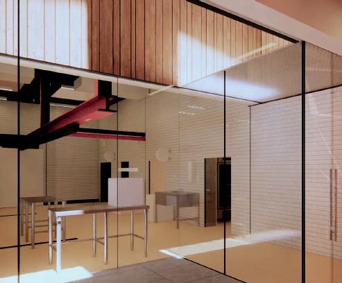 �ese changes were suggested months before the completion of the construction, so careful detailing and approaches have been made for the contractors. �e client ultimately chose the showcased option, but it has additional challenges as the glass corridor uses laminated heated panels to avoid condensation.