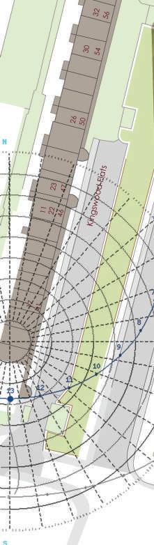 �e second option consists of two new buildings with a sensible and cursive approach to the site’s �low.