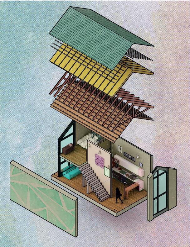 The featured design concept is a one-bedroom micro-home using traditional and conceptual construction.