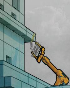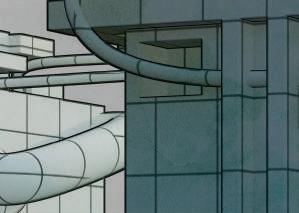 �e client is well known for appreciating curtain-glazed walls, but one of the design challenges was the low temperatures in which the building had to operate. For this requirement, Cor-ten steel sheets are being used as shades for the the visitor’s gantry.