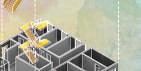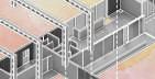 The 3d printed houses are a diagrammatic representation of volumetric possibilities that could take place on the rooftop, as the concept of experimental and cheap 3D printed homes would imply relocation and redesigning at all times.