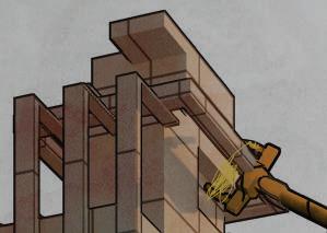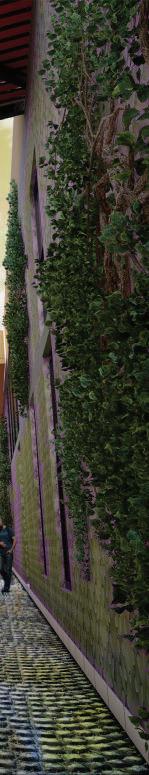 The featured axonometric is part of the facade. A 3D printed Gyroid out of PLA will allow ivy and other hanging species of plants to grow. The Gyroid was designed using Grasshopper for an accurate representation of organic shapes. The facade must be prefabricated and then attached to the wall to achieve printable angles. All possible failed components can be molten and extruded back into filament with no waste.