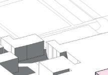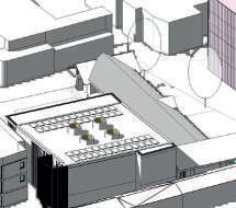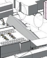 �e First option consists of a new building and an extension of the student union’s building. �is option improves the overall �low between the two buildings improving the social space.