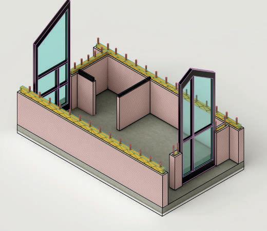 Further meetings with the glazing specialist were held to be able to cra�t details for construction issuing having a superficial loss of material, low costs and an easy to-build approach.