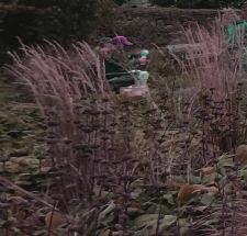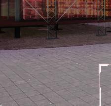 -Behind the building, situated within the retaining wall under the connecting bridges.