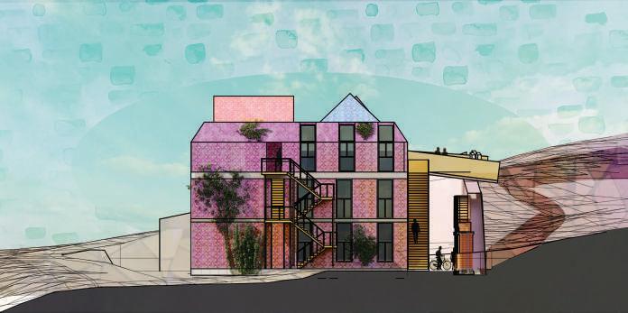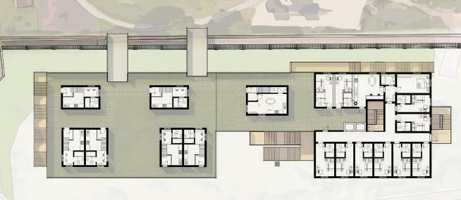 Ethos (now merged with ADP) has been appointed to design the master plan for 19 a�fordable houses using Top Hat’s modular construction strategy. �e houses are prefabricated and delivered directly on-site, reducing labour and transport costs.