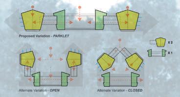 The corridors connect the 3 modules. The middle module is an open garden, and the other two are for the sitting area. The site is on Alber Road, Portsmouth, surrounded by local shops, so the module’s primary purpose is leisure, either a peaceful place to drink your coffee or simply enjoy the surroundings.