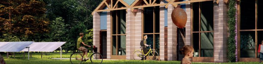 -Fully 3D printed experimental houses made out of concrete and plastic cladding.