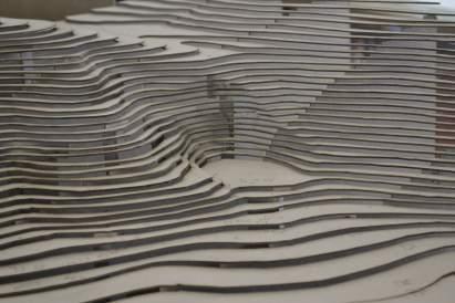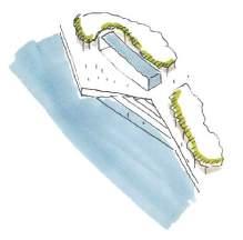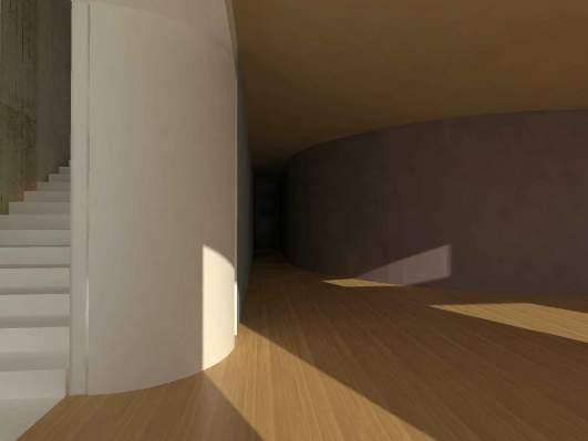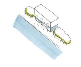 A housing block with 5 flats, the so called villa- block, is basiclly 5 dwellings stacked on top of one another. The trumpet shape of the space inside defines the main orientation on the river. The shifting of floors and the trumpet shape acts to add quality to the new(the shifting makes terraces and the shape a big window) and at the same time respects the views of an existing block of flats behind the building.