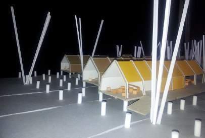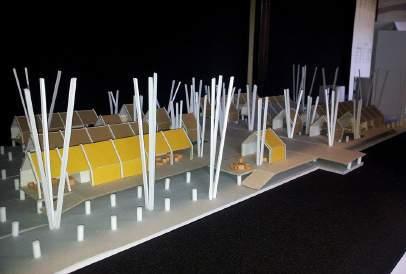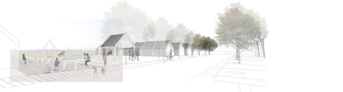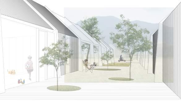 The site of the project is a part of Nature park Barje. The new proposed settlement is lifted on a platform as a anti flooding system. The densely built area contains single family row houses, alongside with neccesary public program: a bus stop, kindergarten, market, horse stables for tourist rides... Architecture of the new settlement has source in the typical farm house of Barje, longitudinal rectangle with a gable roof. The farm houses of the past allowed to be extended as the fammily grew. This is also applied to the design fo the new house, wich, due to the prefabricated wooden system and flexibility of floor plan, can grow according to the size of the family and the budget of the inhabitants.