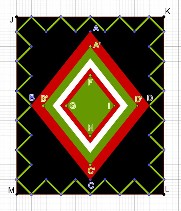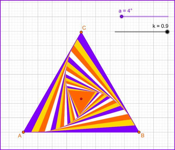 ABC is a equilateral triangle with AB=8. Each triangle, starting with the second, has a side 0.9 from the side of the previous triangle