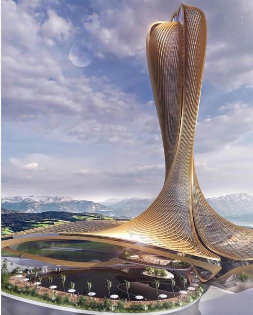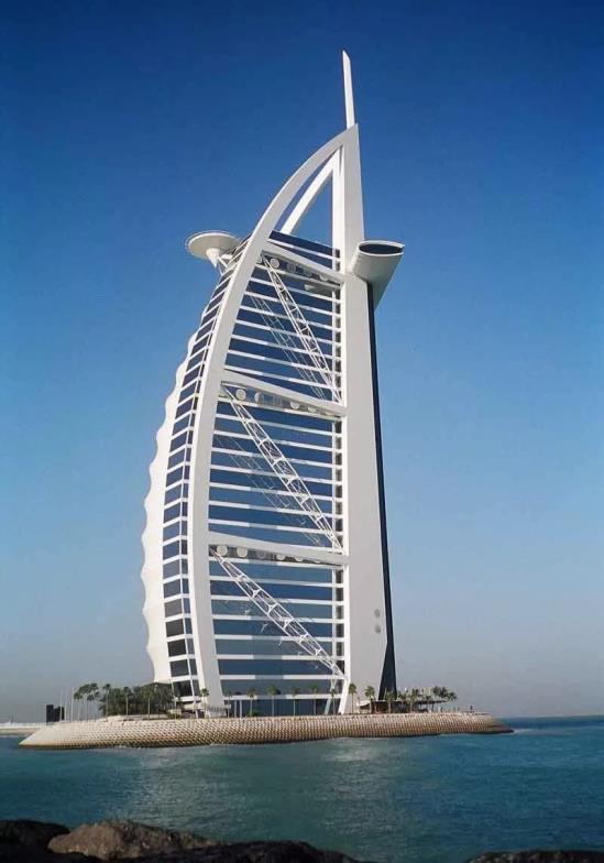 The Burj Al Arab hotel is 321 meters above the ground. Considering that the sides of each of the triangular poles in the body of the hotel are 90 meters, what is the length of the irons used as the hypotenuse?