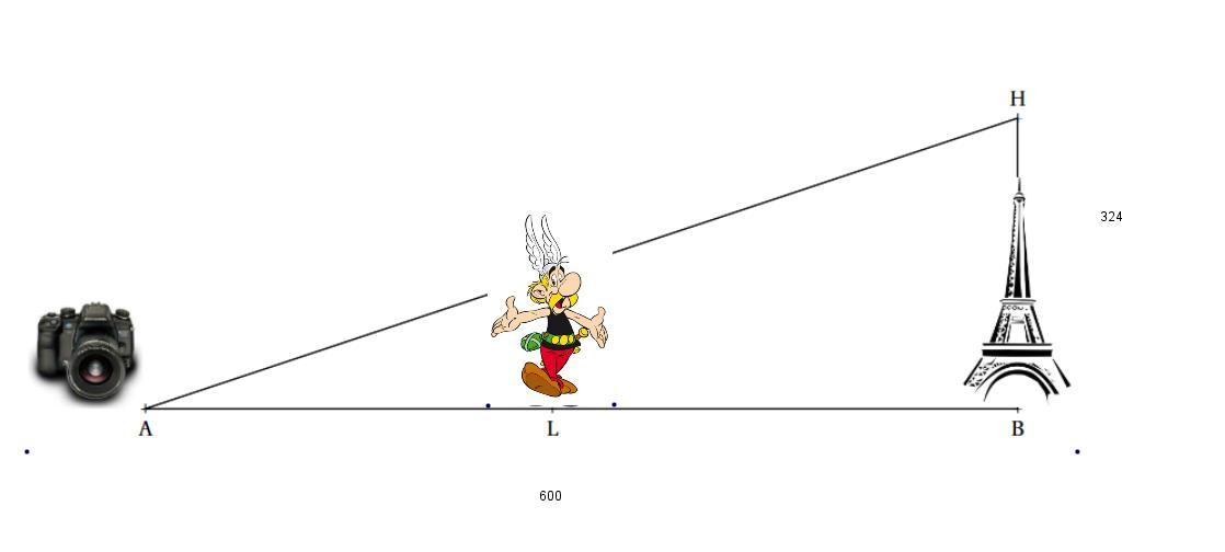 2 Knowing that Asterix is 1.70 m tall, at what distance AL must she stand to appear as tall as the Tower Eiffel in his photo?