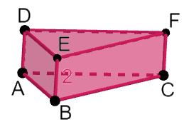 Before eating this cake, we are going to calculate its volume. The length AB equals 8 cm and the length EB equals 2 cm. ABC is an equilateral triangle. CBG is a rectangle triangle in G. The point G intersects the line AB in two.