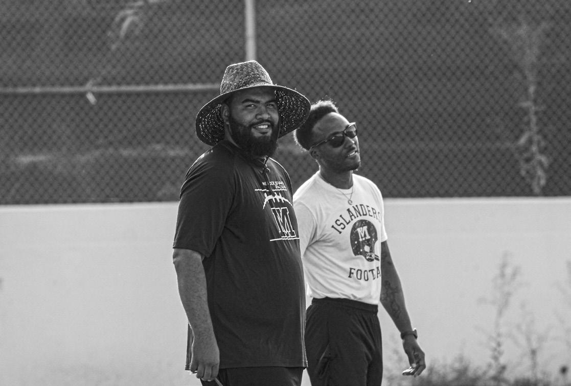 One of the few returning coaches from last season is Drayton (the man who assisted in tracking down Mims in the first place — justmakesureyouwritethatCoach Drayton is very handsome — he said with a chuckle while dialing Mims on the phone). Drayton played college football at the University of North Carolina at Chapel Hill where he was an inside linebacker. Drayton (or Coach Mo as his team calls him) now serves as the Islanders’ Varsity and JVC Offensive and Defensive Line coach.