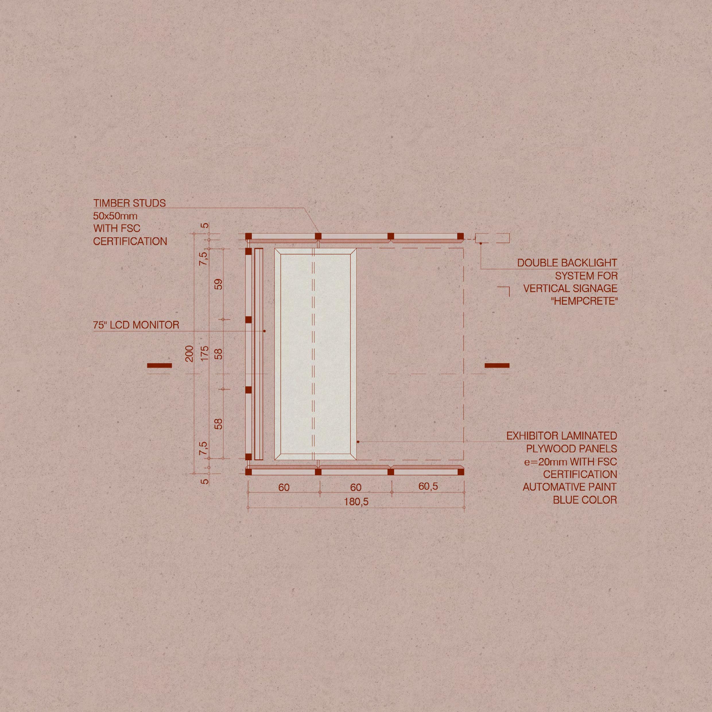 PANEL 2's TIMBER STUDS STRUCTURE50x50mm with FSC CERTIFICATION, APPARENT FINISH WITH SEALER AND GLOSS STEEL SHEET CHASSIS BLACK COLOR DETAIL 6 | SCALE 1:2