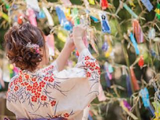 中国で迎え 七夕。天の川の両端に引き離さ た織姫と彦星が年に1度会え この日は、中 国が発祥の行事ですが日本でも古くか 知 てい 行事の1つです。日本では、笹の葉に 願い事を書いた短冊や飾 を吊 し、空を見上げた 、素麺を食べた しなが 過ごします。