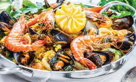 情熱の国スペイン。世 界三大米料理の1つ「 パエリア」の発祥の国 です。海の幸がたっぷ