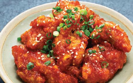 国料理ヤンニョムチキ ンは、鶏肉の臭みを消 すために誕生しまし た。クセにな 甘辛ソ ースに絡め たチキ ンとビールを一緒に楽 しめば、疲 も吹き飛 ぶかもし ません。