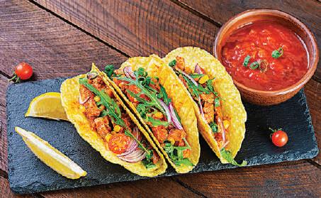 文化財に登録さ たメ キシコ料理は、トウモ ロコシや小麦で作った 薄焼きパンのトルティ ーヤが主食。さまざま な具材をはさんだ 巻 いた して食べ タコ スやブリトーはバリエ ーション豊富です。