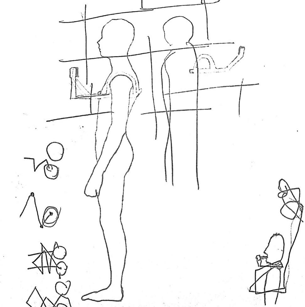 • Los integrantes del grupo comenzamos a dibujar los bocetos definiendo las relaciones sensoriales y el aspecto de nuestro artefacto. Asimismo, teníamos que conocernos a ambos para conectar mejor el proyecto. Concluimos en potenciar nuestro habla y audición. Uno era bueno hablando y el otro escuchando, sin embargo quien era bueno escuchando tenia problemas para el contacto visual. Debido a esto, es que estamos al lado y no frenteafrente.