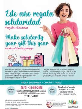 Mesas solidarias ‘Este año regala solidaridad’ Plaza de la Tenencia de Alcaldía de La Cala, últimos miércoles y sábado de cada mes, de 11 a 14 h El sábado 22 de febrero contará con la actuación del coro Costa Soul Singers al mediodía